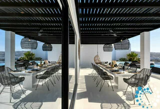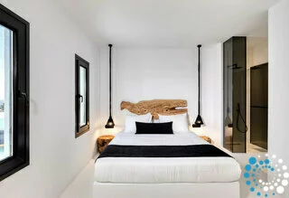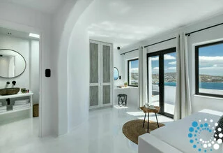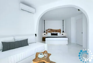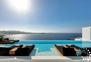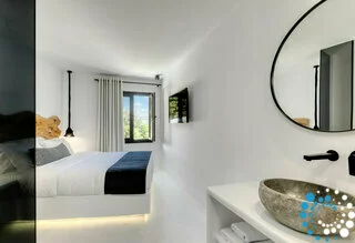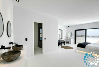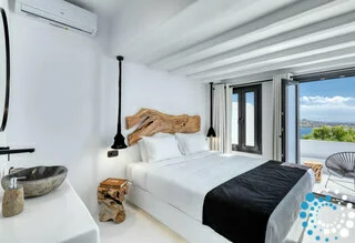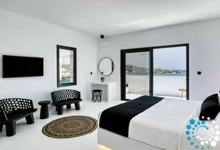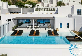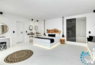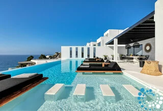 Stap naar buiten om te ontspannen bij twee uitgestrekte infinityzwembaden, te zonnen op privé-ligbedden of een rustige wandeling te maken over het privépad naar Psarou Beach, op slechts vier minuten lopen. Het interieur van elke villa combineert minimalistisch design met hoogwaardige voorzieningen, waardoor de ruimtes zowel comfortabel als perfect Instagram-waardig zijn.