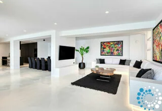 Het pand beschikt over 11 elegant ingerichte slaapkamers met eigen badkamer, elk voorzien van kingsize bedden en anatomische matrassen voor optimaal comfort. Twee volledig uitgeruste keukens en twee ruime woonkamers, compleet met grote lcd-tv's en zachte banken, bieden de perfecte ruimte om te ontspannen en samen te komen. Binnen dineren kan in de intieme eetruimtes, terwijl de buitenruimtes met pergola's overdekte eethoeken, loungegedeeltes en ligbedden in het zwembad uitnodigen om van de idyllische omgeving te genieten. Drie hot tubs – twee buiten en één binnen – bieden momenten van verwennerij met uitzicht op zee.