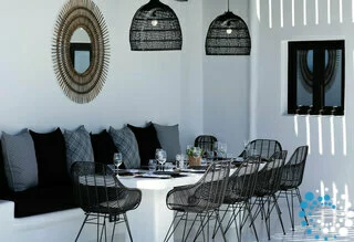 Villa Basalt ligt aan de zuidkust van Mykonos, dicht bij het beroemde Psarou Beach. Psarou Beach is momenteel het meest trendy strand van het eiland. Het is een hotspot voor beroemdheden en feestliefhebbers en belooft bijzondere momenten van luxe dineren, zwemmen in kristalhelder water en genieten van de topvibe van deze ongerepte locatie.