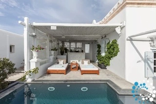 Oorspronkelijk gebouwd in de jaren 1850, was dit het favoriete vakantiehuis van Pierro Aversa, de Argentijnse schilder die Mykonos naar verluidt tot de kosmopolitische bestemming maakte die het vandaag is. Door diep in het verleden te graven, hebben architecten de geschiedenis van dit aristocratische huis opnieuw vormgegeven en moderne elegantie harmonieus gecombineerd met een vleugje nostalgie. De ruime, met licht gevulde interieurs passen perfect bij de grootte van de prachtige terrassen, met spectaculair zeezicht en een privézwembad.