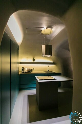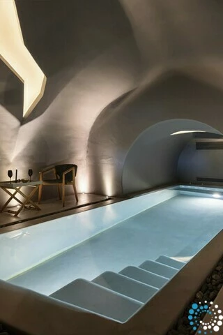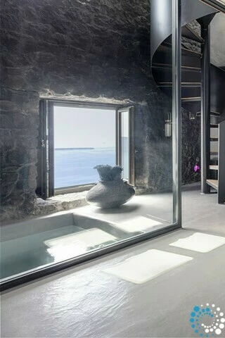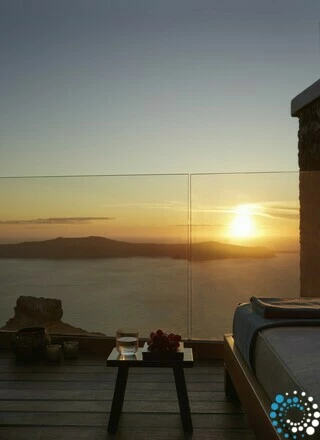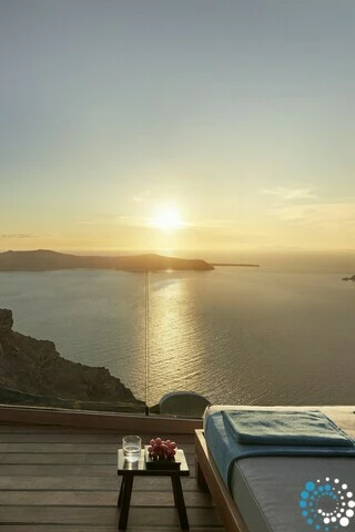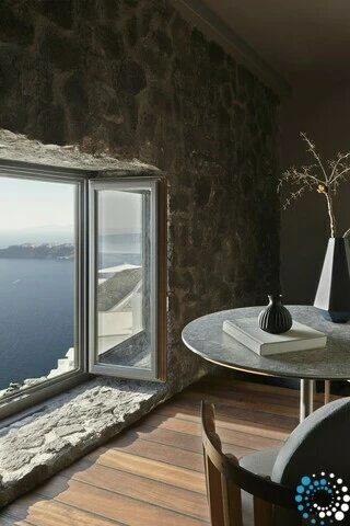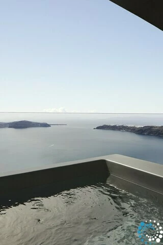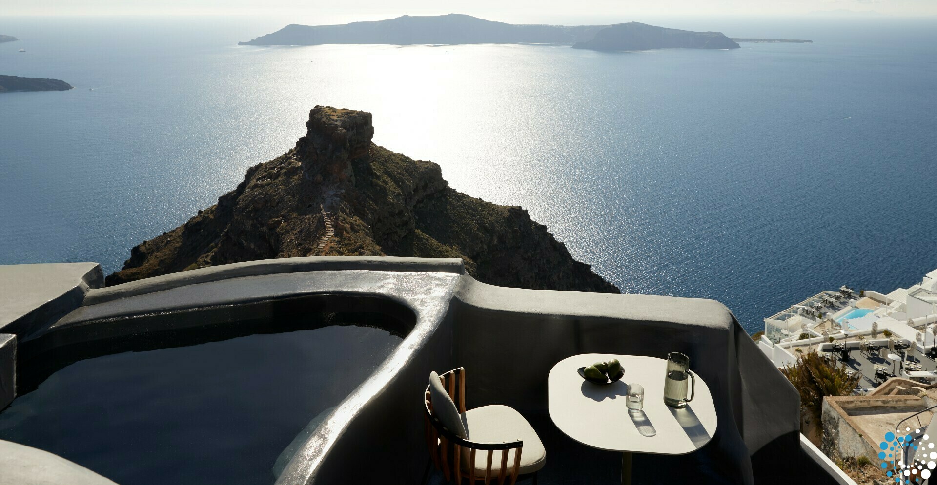 Dankzij doordachte planning en ontwerp kan men volop genieten van het adembenemende 180-graden uitzicht op de caldera en de wereldberoemde vulkaan die in de diepblauwe Egeïsche Zee is gezonken. In tegenstelling tot veel accommodaties op het eiland hoeft men niet af te dalen om het hotel te bereiken. Gasten kunnen rechtstreeks naar een parkeerplaats voor de ingang van het eerste gebouw rijden, met slechts twintig treden die naar het tweede gebouw leiden.