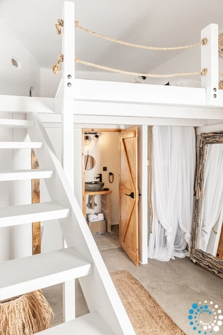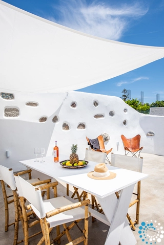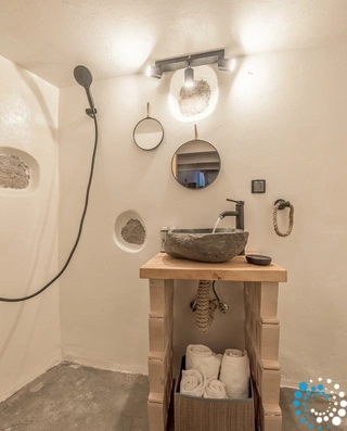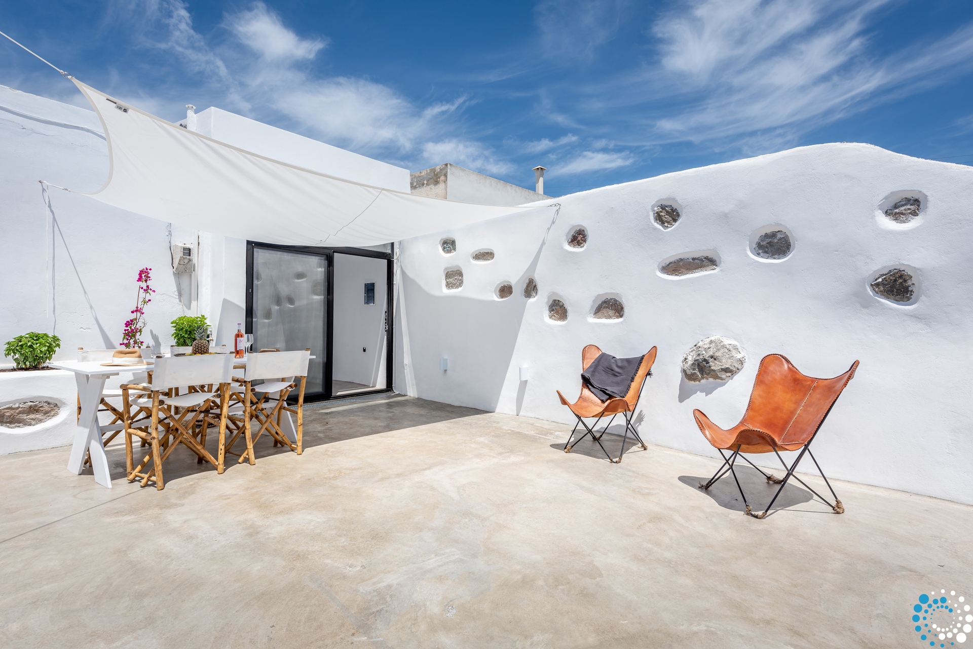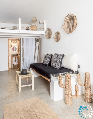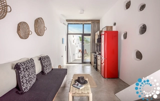 De muren zijn van ijzersteen en het hele appartement is ingericht in een traditionele, gezellige stijl die perfect samengaat met de Cycladische cultuur. Het appartement heeft directe toegang tot een grote eilandtuin met een ruime eettafel en stoelen om eindeloos te ontspannen.