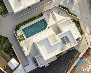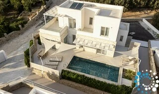 De omgeving rondom de villa heet Galini en wordt beschermd door sterke zeewinden.