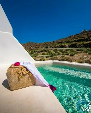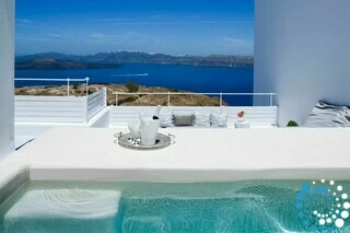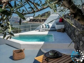 De villa maakt deel uit van een exclusieve collectie van negen luxe villa’s en suites, met panoramisch uitzicht op de caldera en het vulkanische landschap. Dit verfijnde toevluchtsoord combineert hoogwaardig comfort met ruime ontwerpen en creëert een rustige sfeer weg van de drukte, terwijl het toch gemakkelijk bereikbaar is en parkeergelegenheid direct voor de deur biedt. Gasten kunnen kiezen uit verschillende accommodaties, elk met een privézwembad, ruime patio’s en een ononderbroken uitzicht op de Egeïsche Zee en de indrukwekkende kliffen.