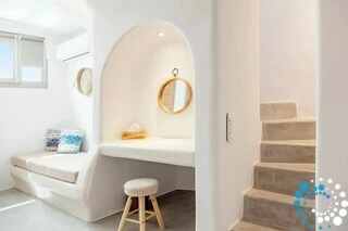 Ondanks de rustige ligging is het resort goed verbonden met de rest van het eiland. De haven en de luchthaven zijn gemakkelijk bereikbaar, terwijl de levendige hoofdstad Fira op korte rijafstand ligt en uitnodigt om de bruisende sfeer, winkels en bezienswaardigheden te ontdekken. Villa Euprepeia biedt een unieke manier om Santorini te ervaren, waar natuurlijke schoonheid, geschiedenis en luxe naadloos samenkomen.
