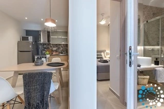 De 45 m² grote Suite Galas bevindt zich in Vasilias, Skiathos, en maakt deel uit van een complex. De suite beschikt over twee aparte slaapkamers met queensize bedden, een luxe badkamer en een open ruimte met een volledig uitgeruste keuken, eethoek en lounge met een eenpersoons slaapbank.