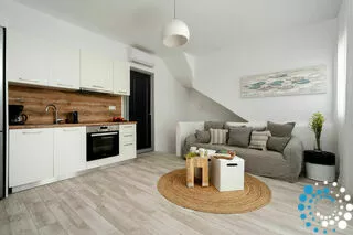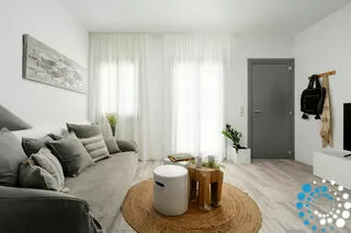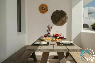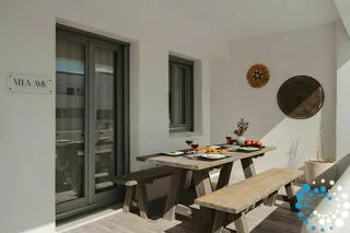 De villa is geschikt voor maximaal zes gasten. Het hoofdverdiep beschikt over een charmant terras met een eettafel, een heerlijke plek om te genieten van maaltijden met uitzicht op zee. Binnen vindt u een volledig uitgeruste keuken en een gezellige woonkamer met een comfortabele sofa, perfect om te ontspannen na een dag op het strand.