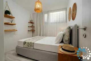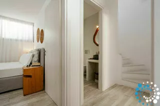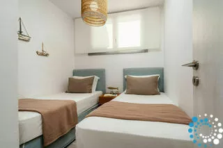 Op de benedenverdieping bevinden zich drie slaapkamers. De master bedroom heeft een tweepersoonsbed en een eigen badkamer. De tweede slaapkamer beschikt ook over een tweepersoonsbed, terwijl de derde slaapkamer is uitgerust met twee eenpersoonsbedden, ideaal voor kinderen of vrienden. Een tweede badkamer op deze verdieping zorgt voor extra comfort.