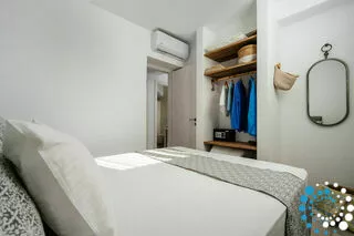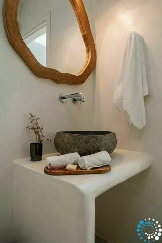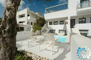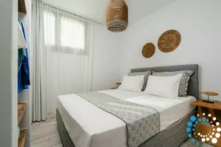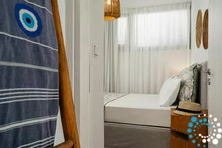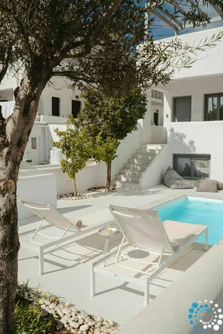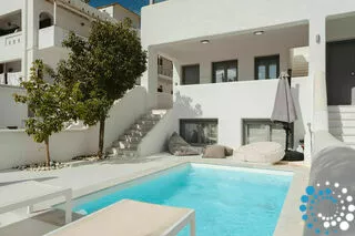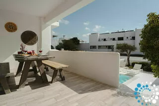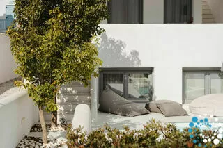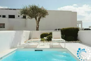 Buiten biedt de villa een kleine privézwembad in de tuin, ideaal om af te koelen en te genieten van de warme Egeïsche zon. Het is een uitnodigende plek voor een ochtendkoffie, een verfrissend drankje of gewoon om te ontspannen met familie en vrienden. Vanuit het terras leidt een trap naar het dakterras, waar u kunt genieten van een prachtig uitzicht en onvergetelijke momenten.