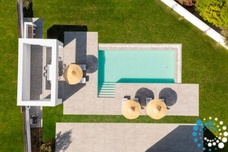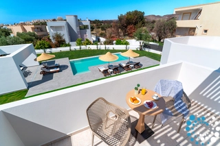 Op de eerste verdieping bevinden zich twee stijlvolle tweepersoonskamers, elk voorzien van een queensize bed en open kledingkasten voor voldoende opbergruimte. Ruime balkons bieden een prachtig uitzicht op het zwembad en de omgeving, perfect om van uw ochtendkoffie of een moment bij zonsondergang te genieten. Deze verdieping beschikt ook over een ruime badkamer met bad voor extra comfort.