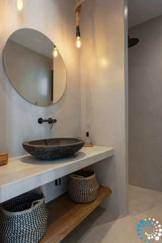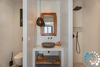 Deze elegante villa beschikt over drie tweepersoons slaapkamers, elk ontworpen met rustgevende tinten en natuurlijke texturen om een serene sfeer te creëren. De accommodatie heeft drie moderne badkamers en een extra gastentoilet, wat comfort en privacy voor alle gasten garandeert.