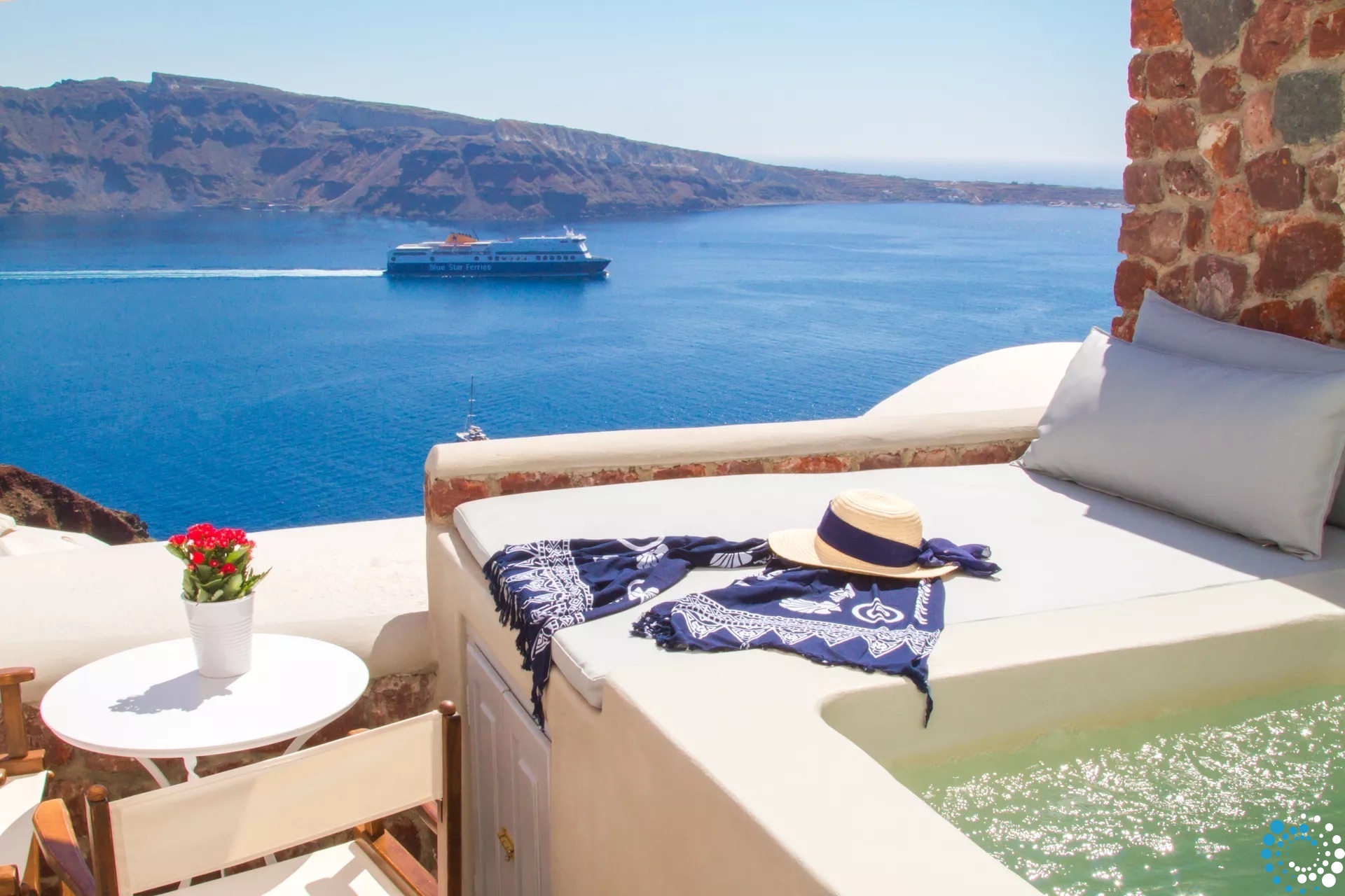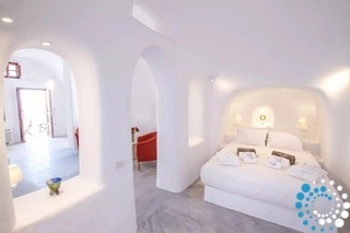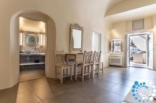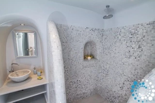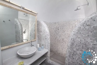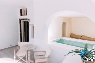 Villa Haven met buitenjacuzzi biedt plaats aan maximaal 2 personen en beschikt over één slaapkamer met een groot tweepersoonsbed en een aparte zithoek met een minibar en een waterkoker. De badkamer is voorzien van een douche met gratis doucheproducten, een haardroger, slippers, badjassen en handdoeken voor bij het zwembad. De jacuzzi bevindt zich op het terras. Het terras is uitgerust met tuinmeubilair – een parasol en stoelen – en biedt een adembenemend uitzicht op de caldera, de omliggende eilanden en de Egeïsche Zee.