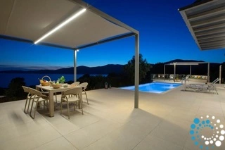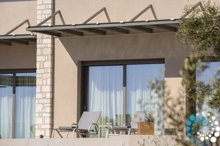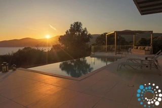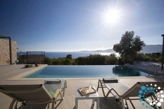 Buiten vind je je eigen privé-oase. Een sprankelend zwembad staat centraal, omringd door een ruim zonneterras met comfortabele ligstoelen en parasols – de perfecte plek om van de Griekse zon te genieten. De overdekte buiten-eet- en loungehoek nodigt uit tot ontspannen ontbijtjes, luie middagen of romantische diners onder de sterrenhemel, terwijl de weelderige tuin zorgt voor een gevoel van rust en afzondering.