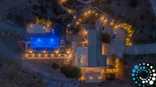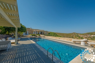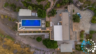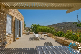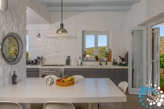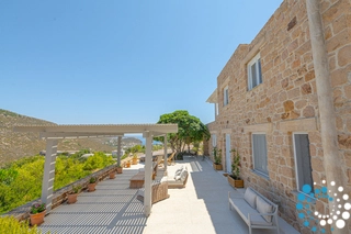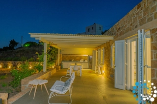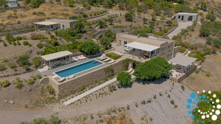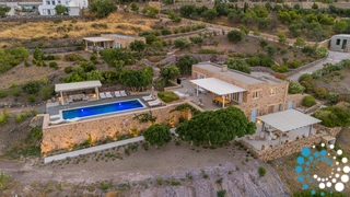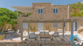 Het huis is gebouwd met zichtbare, met de hand vervaardigde lokale stenen door de beroemde architect Dimitris Konstantinidis en kan omschreven worden als modern en toch zeer gezellig.
