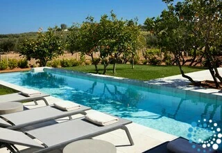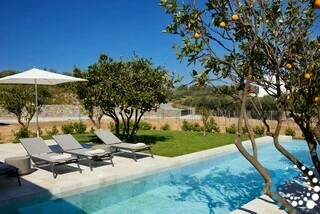 De uitgestrekte tuin biedt een veilige speelruimte voor kinderen en beschikt over seizoensgebonden biologische groenten en fruit die beschikbaar zijn voor gasten. Omgeven door kruiden, wijngaarden en citrusbomen biedt deze gloednieuwe villa een unieke agritoerisme-ervaring, waarbij natuur wordt gecombineerd met een strak, modern en minimalistisch design.