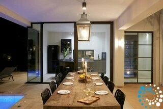 Villa Kitria maakt deel uit van een privécomplex met twee identieke, elegant ontworpen villa’s. Gelegen op een omheind landgoed biedt het zowel privacy als een gevoel van verbondenheid, ideaal voor families of groepen die dicht bij elkaar willen verblijven maar toch hun eigen onafhankelijke ruimte willen behouden.