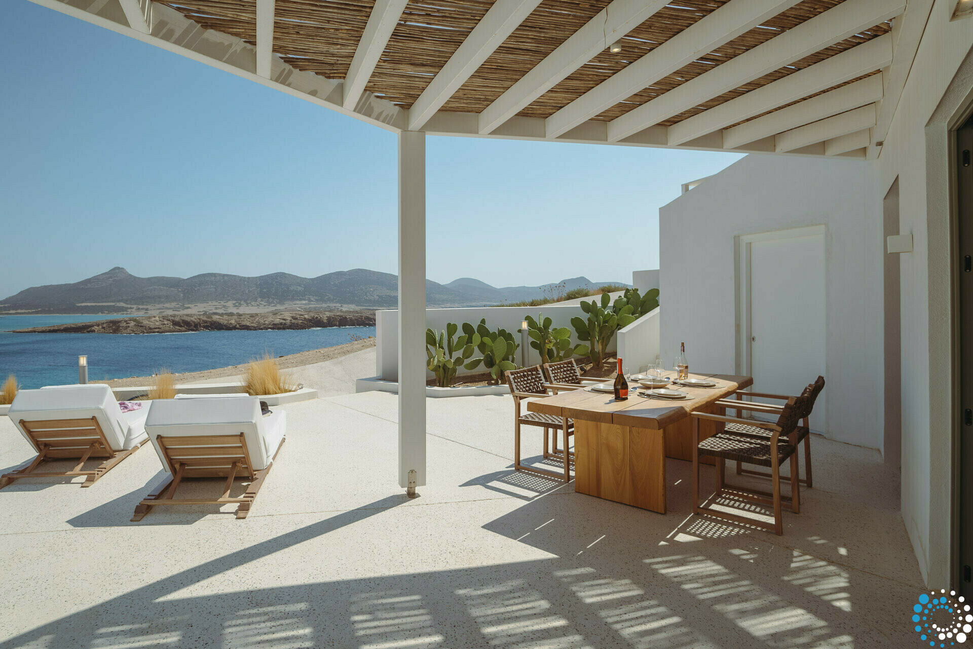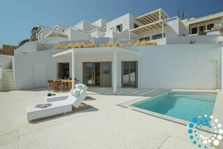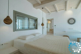 De woning straalt moeiteloze elegantie uit en combineert modern comfort met de tijdloze charme van traditionele Cycladische architectuur. Warme houten accenten en verfijnde olijfgroene tinten creëren een uitnodigende en verfijnde sfeer die door het hele huis voelbaar is. Buiten biedt een afgelegen privé plunge pool de perfecte plek om te ontspannen terwijl u geniet van het weidse uitzicht.