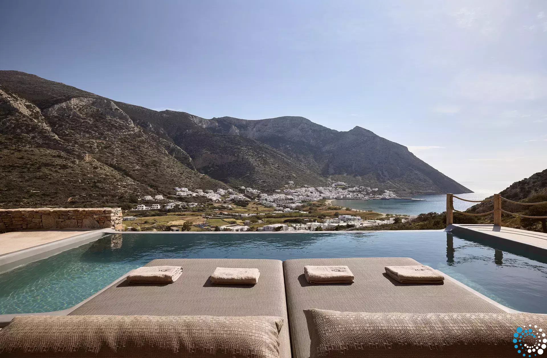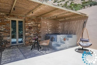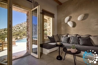 De villa bestaat uit 2 verdiepingen. Op de bovenverdieping vindt u: een open woonkamer met volledig uitgeruste keuken, een master bedroom met kingsize bed en ensuite badkamer, een tweede slaapkamer met kingsize bed of twee eenpersoonsbedden. Op de benedenverdieping: een open slaapkamer met kingsize bed en een kleine zithoek met een fauteuil, een ruime badkamer en een privéterras met jacuzzi en ononderbroken uitzicht op zee. De villa is geschikt voor maximaal 7 gasten.