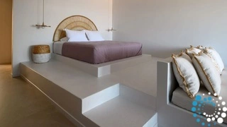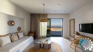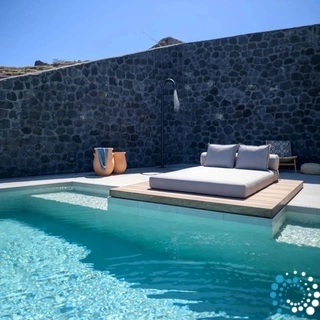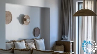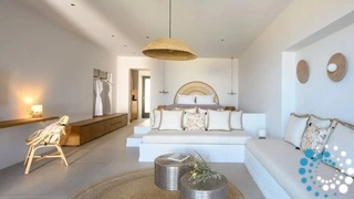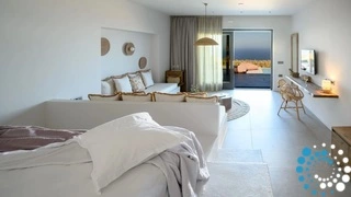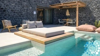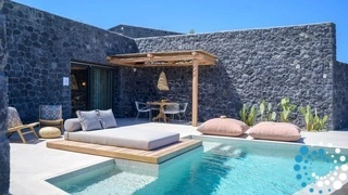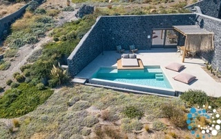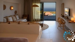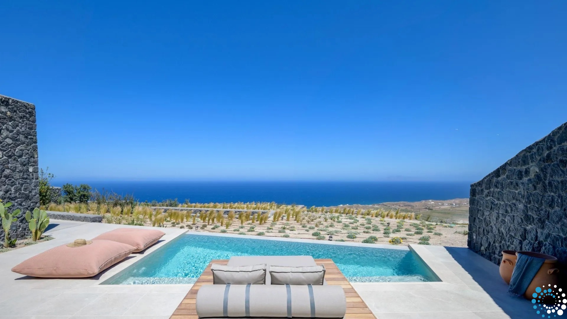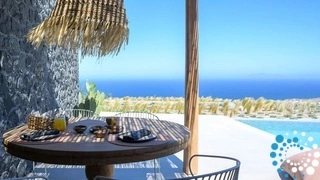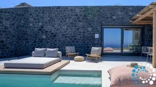De villa beschikt ook over een ruime badkamer met regendouche en komt uit op een privébalkon met stenen muren, speciaal ontworpen voor ware privacy en intimiteit. Het prachtige privéterras beschikt over een infinity pool waar het stel kan genieten van een verfrissende duik met uitzicht op het fonkelende water van de Egeïsche Zee.
