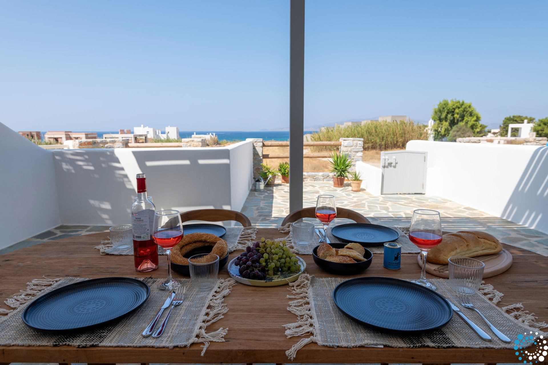 Een rustige compositie van zee, lucht en eenvoud vormt het karakter van deze eilandwoning op Naxos.