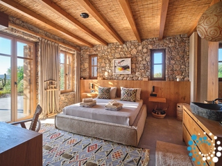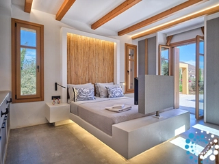 De unieke ligging in een ongerepte vallei biedt rust en privacy, terwijl het bruisende Naousa op slechts 10 minuten afstand ligt. Op wandelafstand (5 minuten) vindt u het prachtige zandstrand Molos. Tot de voorzieningen behoren een privézwembad, verwarmde jacuzzi, een uitgeruste fitnessruimte en een openlucht yoga- en meditatiezone.