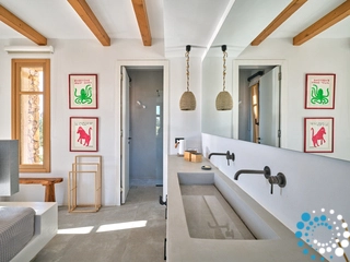 De mediterrane zon voedt niet alleen de wijngaarden, olijfbomen en moestuinen, maar voorziet de villa ook van zonne-energie. De traditionele waterput voorziet het domein van water voor irrigatie. Dankzij efficiënte klimaatregeling is de villa het hele jaar door een aangename plek – koel in de zomer en knus in de winter.