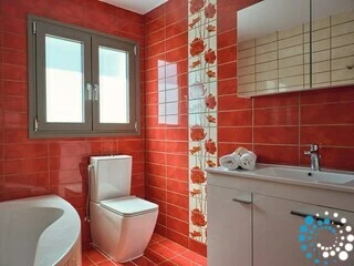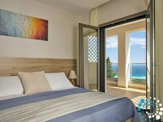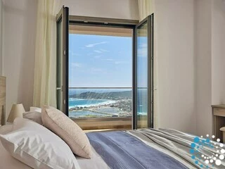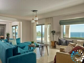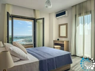 Op de bovenverdieping bevinden zich twee masterbedrooms met queensize bedden, elk met een eigen badkamer—de ene met een ligbad, de andere met een douche. Daarnaast zijn er twee tweepersoonskamers die kunnen worden omgezet in queensize bedden, die een badkamer met douche delen. Elke slaapkamer biedt een prachtig uitzicht op de zee en het zwembad, wat een luxe en onvergetelijk verblijf garandeert.