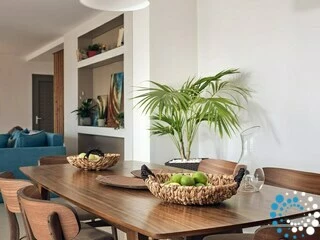 Binnen biedt elke villa een ruime woonkamer verbonden met een volledig uitgeruste, moderne keuken, evenals een gemeubileerd terras met directe toegang tot het zwembad.
