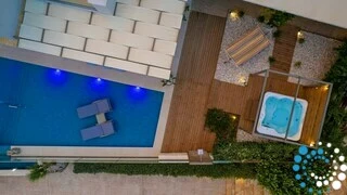 De villa beschikt over een eigen terrein, inclusief een zwembad, een verwarmde jacuzzi voor 6 personen en een ingebouwde barbecue. Een scheidingsmuur verdeelt de twee Artemis Villas, waardoor het mogelijk is voor grotere groepen om beide villa’s samen te huren (ideaal voor maximaal 20 gasten). Gasten kunnen ook genieten van maaltijden van de restaurants van de eigenaren, met de mogelijkheid om diner rechtstreeks naar de villa te laten bezorgen.