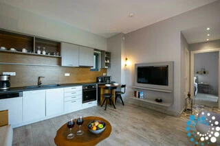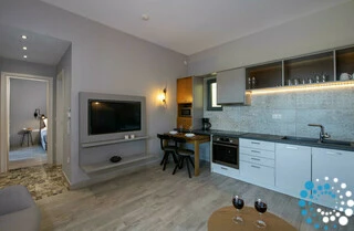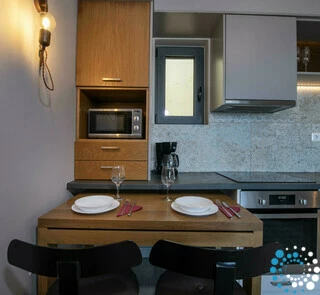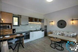 Met een oppervlakte van 52 vierkante meter biedt deze villa een verfijnd en uitnodigend verblijf. Ze beschikt over een prachtig ingerichte slaapkamer met een kingsize bed, elegante decoratie en een rustgevende sfeer voor een heerlijke nachtrust. De moderne badkamer is uitgerust met een jacuzzi-douche en een wasmachine, wat comfort combineert met praktisch gemak. De volledig uitgeruste keuken, voorzien van essentiële apparaten en keukengerei, gaat naadloos over in een stijlvolle leefruimte met een comfortabele slaapbank, eethoek en Smart TV, ideaal voor ontspannen avonden binnenshuis.