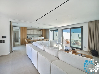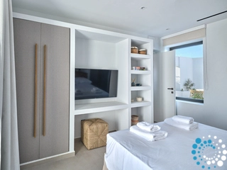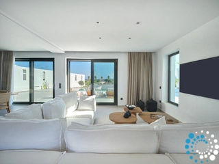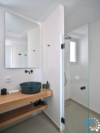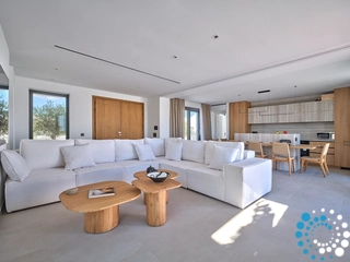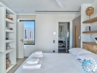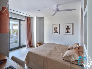 Binnenin omvat de villa een master bedroom met een kingsize bed en een en-suite badkamer met douche, een extra slaapkamer met een kingsize bed en een en-suite badkamer met douche, een comfortabele woonkamer, een eetruimte, een volledig uitgeruste keuken en een gastentoilet. Twee extra slaapkamers hebben een aparte ingang, zijn verbonden aan het hoofdgebouw en beschikken elk over een en-suite badkamer met douche, wat extra privacy biedt voor gasten.