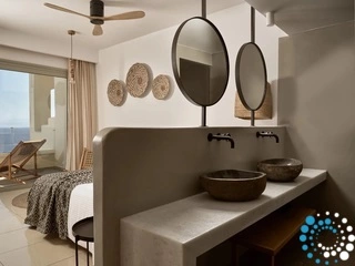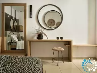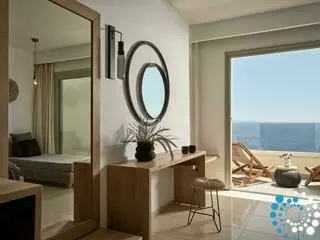 Kom tot rust in een stijlvol ingerichte, ruime kamer van 26 m², ontworpen om te kalmeren en te inspireren. Zachte neutrale tinten en natuurlijke houten accenten creëren een rustieke, kustachtige sfeer met een warme en uitnodigende uitstraling. Het lichte interieur opent naar een balkon met adembenemend zeezicht, terwijl het gedeelde zwembad een prachtig panorama biedt op de bergen en de zonsondergang — de perfecte plek om te ontspannen en nieuwe energie op te doen.