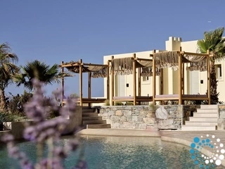 Gelegen boven de kustlijn in Agia Pelagia maakt Villa Oikia deel uit van een vijfsterrenresort op Kreta, met een panoramisch uitzicht op zee dankzij de verhoogde ligging. Mononaftis Beach ligt op slechts 80 meter afstand, ideaal voor strandliefhebbers.