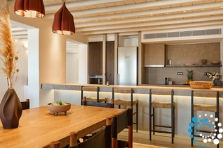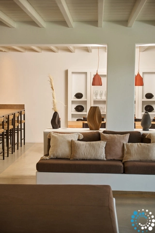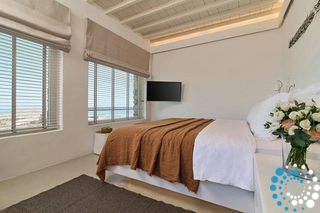 De villa is gebouwd op twee niveaus. Op de begane grond bevinden zich 2 ruime slaapkamers met en-suite badkamers, een ultramoderne woon- en eetkamer, een volledig uitgeruste keuken en een gastentoilet. Op de bovenverdieping zijn er 3 ruime slaapkamers met en-suite badkamers en panoramische ramen, waar je adembenemende zonsopgangen kunt bewonderen zonder je kingsize bed te verlaten.