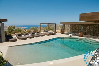 Geniet van een uniek uitzicht op de zonsondergang en de eindeloze zee over de hele Egeïsche Zee, waar je op een heldere dag minstens vijf verschillende Cycladische eilanden kunt zien.