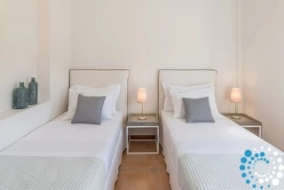 Op de bovenverdieping bevindt zich een serene slaapkamer met een queensize bed en een privébalkon met prachtig zeezicht, voorzien van airconditioning en een stijlvolle badkamer op dezelfde verdieping. Op de begane grond vindt u twee uitnodigende slaapkamers. Eén beschikt over een kingsize bed dat op verzoek ook als twee aparte bedden kan worden opgesteld, terwijl de andere een ruim queensize bed heeft en toegang biedt tot een terras met zeezicht en ligbedden voor ultieme ontspanning. Op deze verdieping bevindt zich tevens een goed uitgeruste badkamer.