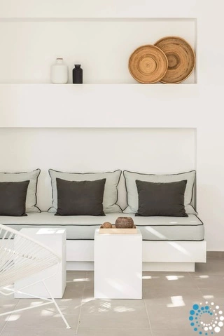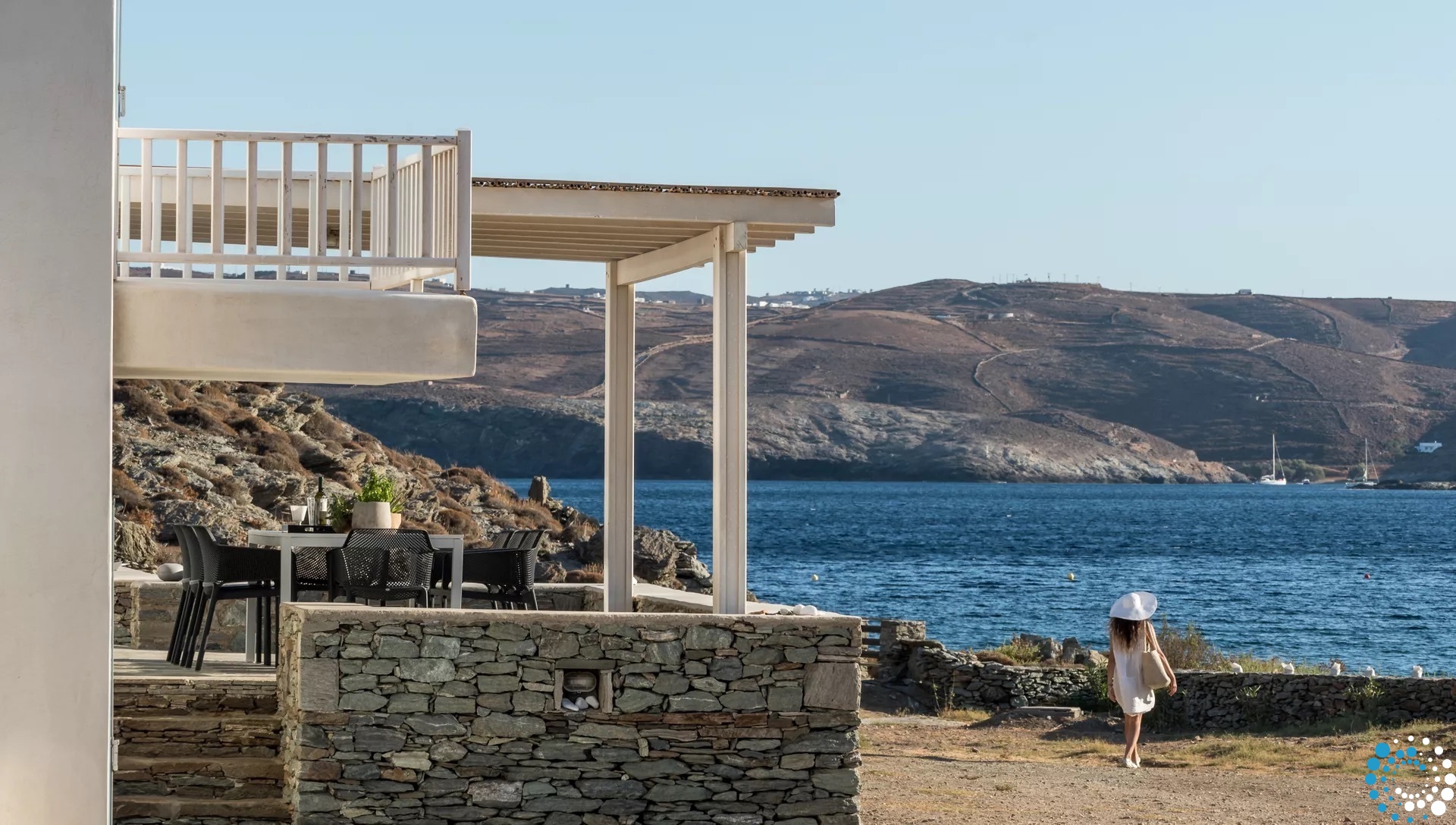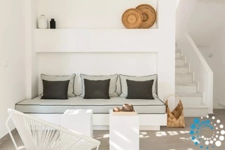 Villa Ponti maakt deel uit van een exclusief complex, perfect gelegen aan het afgelegen strand van Agios Sostis. Deze ongerepte parel is een van de mooiste stranden van de Cycladen, met kristalhelder water en een rustige sfeer. Stap ’s ochtends uit bed voor een verfrissende duik en geniet daarna van uw koffie op een ligstoel, terwijl het zachte ritme van de zee de toon zet voor de dag.