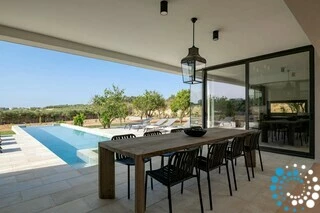 De grote tuin biedt een veilige speelruimte voor kinderen en levert bovendien verschillende biologische groenten en fruit die voor gasten beschikbaar zijn. Omringd door kruiden, wijngaarden en sinaasappel- en citroenbomen biedt deze gloednieuwe villa een unieke agritoeristische ervaring, waarbij natuur wordt gecombineerd met een strak, modern en minimalistisch design.