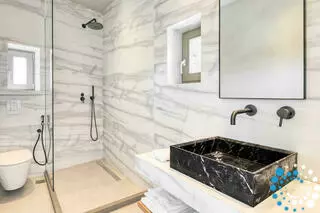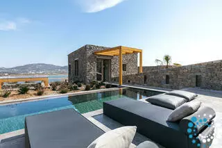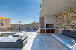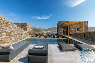 Buiten kunnen gasten genieten van een privé-infinitypool en ontspannen op de comfortabele ligbedden terwijl ze van het uitzicht op de tuin en de zee genieten. Een stenen BBQ, een charmant zitgedeelte en een veranda bieden perfecte plekken om te dineren en te ontspannen. Het privéterras versterkt het gevoel van afzondering en er is parkeergelegenheid beschikbaar. Gelegen op slechts 500 meter van Panormos Bay, combineert deze villa elegantie, comfort en gemak in een serene omgeving.