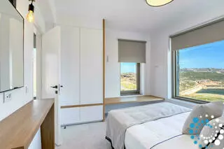 Op maat gemaakte meubels, natuurlijke materialen, fijne linnen en een rustgevend kleurenpalet van wit en grijs wekken een gevoel van verfijnde luxe en exclusiviteit.