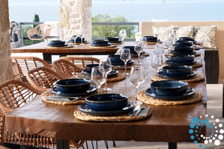 Stel je voor dat je elke ochtend wakker wordt met een adembenemend uitzicht op het glinsterende azuurblauwe water van de Ambracische Golf, terwijl de zachte golven tegen de kust kabbelen en de zonnestralen dansen over het water. Stap op je privébalkon en laat je betoveren door het panoramische uitzicht over de Ambracische Golf bij zonsopgang, of laat je meeslepen door de kleuren van de zomerzonsondergang. Achter het glinsterende water verschijnen de charmante stenen gebouwen en terracotta daken van het schilderachtige dorp Sparto, genesteld tussen de bergen. Het is een scène van pure, onaangetaste natuurlijke schoonheid die je volledig tot rust brengt en je opnieuw verbindt met de sereniteit van de natuur. Of je nu geniet van een rustig ontbijt, wegkruipt met een goed boek of gewoon even stil staat bij het prachtige uitzicht, het adembenemende uitzicht vanuit elke kamer van de villa zal een blijvende indruk achterlaten en je verblijf onvergetelijk maken.