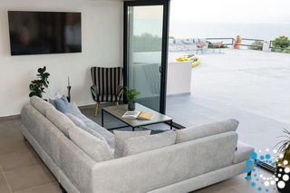 Het echte kroonjuweel van de villa ligt in de 500 m² grote buitenoase. Dit uitgestrekte alfresco-paradijs wordt gekenmerkt door een indrukwekkend infinity-zwembad, waar gasten kunnen afkoelen en van het spectaculaire uitzicht kunnen genieten. Rondom het zwembad bieden comfortabele ligbedden en parasols de ideale plek om te zonnebaden of een boek te lezen. Voor liefhebbers van buiten dineren en entertainen biedt de stenen barbecue en de aangrenzende houten eettafel het perfecte decor voor onvergetelijke buitenmaaltijden. Bovendien kunnen gasten aan de volledig uitgeruste buitenbar genieten van verfrissende cocktails onder de sterrenhemel, terwijl het geluid van de zee op de achtergrond klinkt.