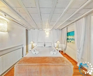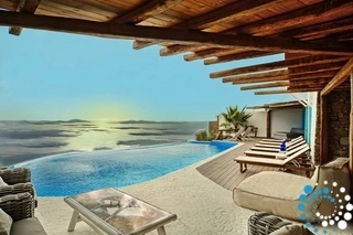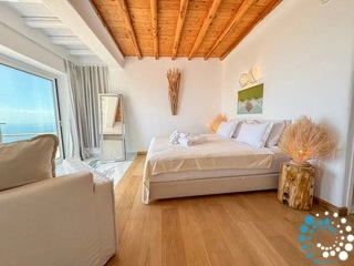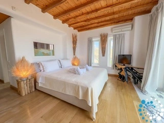 Het complex is gelegen aan de kust, langs de schilderachtige weg van Kastro, ten noordwesten van het eiland en 5 minuten van de nieuwe haven van Tourlos, dichtbij het charmante resort van Agios Stefanos. Ook Beach Houlakia is dichtbij, net als de luchthaven en de haven van Mykonos en Chora (hoofdstad). Deze villa biedt een perfecte uitvalsbasis voor het verkennen van dit meest, betoverende eiland van de Cycladen.