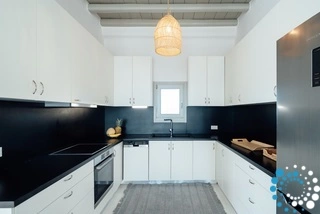 Op de begane grond bevindt zich een open woon- en eetruimte met een volledig uitgeruste keuken, allemaal met directe toegang tot het zwembad. Het souterrain beschikt over twee tweepersoonsslaapkamers met en-suite badkamers, zeezicht en toegang tot een balkon, evenals twee tweepersoonsslaapkamers met en-suite badkamers. Op de eerste verdieping bevinden zich twee tweepersoonsslaapkamers met en-suite badkamers, beide met adembenemend zeezicht en privébalkons.