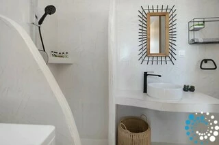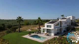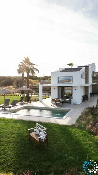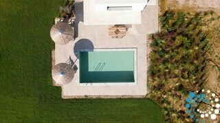 Airconditioning, high-speed Wi-Fi en Smart TV’s zorgen voor comfort en gemak door de hele villa, met huishoudelijke service en linnengoedwissels elke drie nachten of op verzoek. Privéparkeerplaatsen zijn beschikbaar, en onbelemmerd uitzicht op de Agios Mamas-lagune biedt een spectaculair decor bij elk moment.