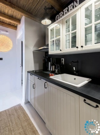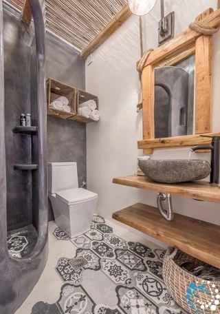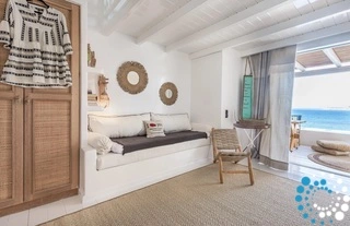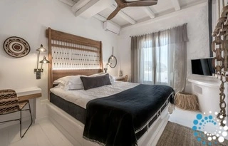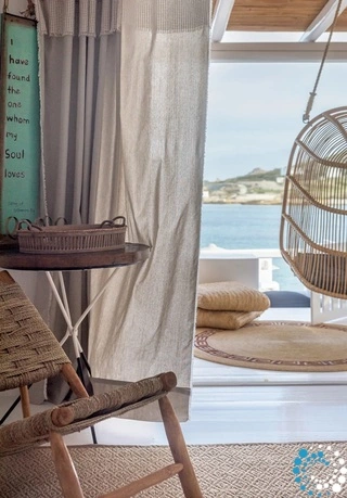 De suite is verdeeld in drie ruimtes en vormt de ideale plek om volledig tot rust te komen. Er is een slaapkamer met een prachtig uitzicht op de schilderachtige haven van Apollonia en een ensuite badkamer, een woonkamer met twee comfortabele ingebouwde sofa’s en een badkamer, en houten trappen die leiden naar de zolder/het loft waar de tweede slaapkamer zich bevindt. De volledig uitgeruste keuken, uitgevoerd in zachte kleuren en met handgemaakt design, voorziet in al uw behoeften en laat u zich helemaal thuis voelen.