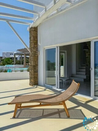 Unit 2 biedt een warme en uitnodigende sfeer met een eigen ingang. De begane grond omvat een volledig uitgeruste keuken, een gezellige woonkamer met satelliet-tv en een eetruimte voor zes personen, evenals een ontbijtbar met prachtig zeezicht. Buiten vind je een veranda met zitplaatsen, een loungegedeelte en een barbecue. Boven bevindt zich de eerste suite van 55 m² met toegang tot een terras en een moderne open douche. Op de benedenverdieping ligt de tweede suite met een aparte woonkamer, kitchenette en de mogelijkheid om te verbinden met een aangrenzende deluxe kamer. Drie extra kamers met zeezicht zijn stijlvol ingericht met kingsize of super kingsize bedden, ensuite badkamers en directe toegang naar buiten.