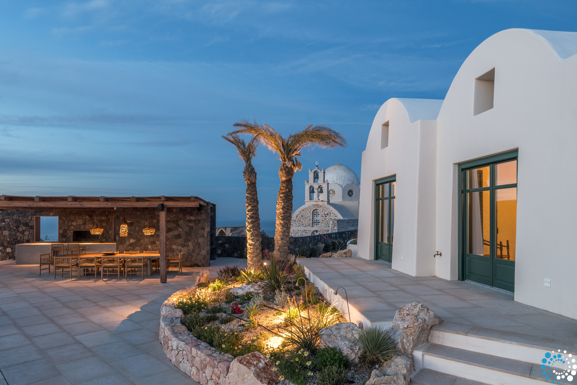 Het landgoed kijkt uit op de prachtig gerestaureerde stenen kapel van de Apostelen, en de sfeervolle ruïnes van Martinou, de oudste Griekse school op Santorini, gesticht in 1799. Minder bekende wandelpaden verbinden het domein met de authentieke dorpen Pyrgos en Emporio, de op de klif gelegen citadel van het oude Thira, en het klooster Profitis Ilias op het hoogste punt van Santorini.