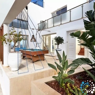 De villa biedt plaats aan maximaal 12 personen en beschikt over een groot zwembad, ligbedden, een hammam, jacuzzi, barbecue, biljart, voetbalhoek, fitnessruimte, ruime zithoeken, een volledig uitgeruste keuken en acht badkamers. Het minimalistische interieur en gebruik van natuurlijke materialen zorgen voor een frisse en rustgevende sfeer, terwijl de balkons en terrassen een adembenemend panoramisch uitzicht op zee bieden. Al deze voorzieningen staan tot uw beschikking, samen met de warme Kretenzische gastvrijheid, die van uw vakantie een onvergetelijke ervaring zal maken.