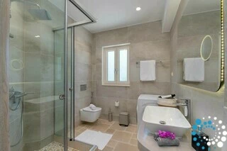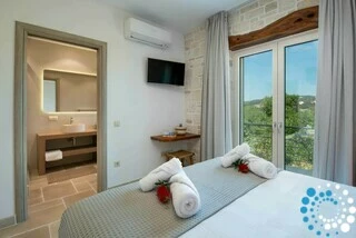 Vier prachtig ingerichte slaapkamers zorgen voor een goede nachtrust in deze luxe villa op Paxos, elk met kingsize bedden met luxe beddengoed en privétoegang tot een balkon. Twee master bedrooms beschikken over een eigen badkamer, terwijl de twee overige slaapkamers kunnen worden aangepast als kingsize of tweepersoonsbed. Alle badkamers zijn uitgerust met designarmaturen, natuurstenen wastafels, inloopregendouches en LED-verlichte spiegels.